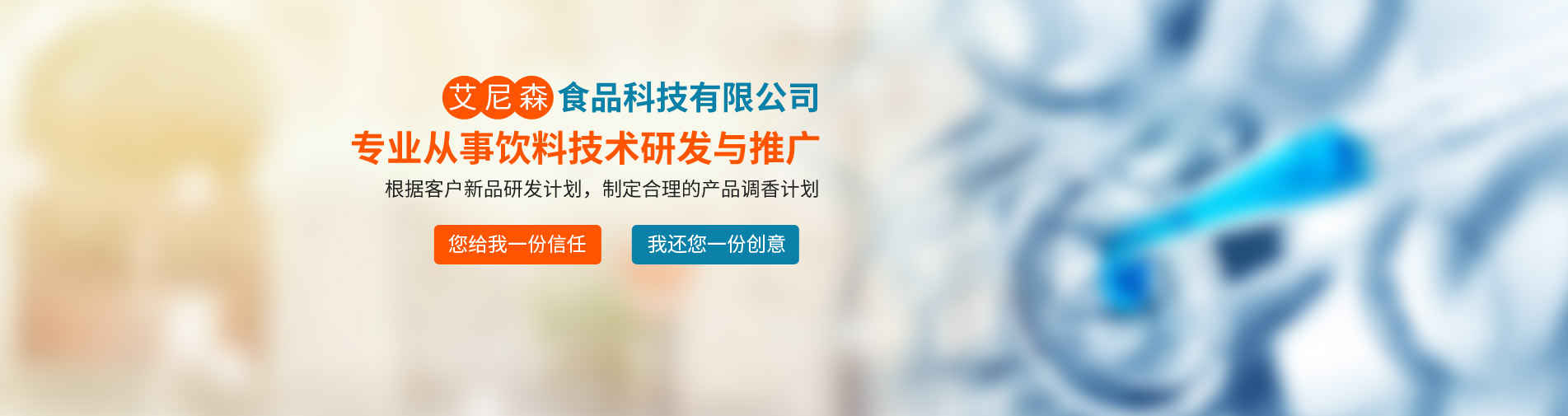 廊坊市艾尼森食品科技公司是一家專業(yè)從事飲料技術研發(fā)與推廣的公司,公司業(yè)務主要包括食品飲料技術咨詢與服務、產(chǎn)品定位與現(xiàn)有產(chǎn)品品質(zhì)改進、新產(chǎn)品技術工藝研發(fā)等。公司坐落于京津冀核心地帶--廊坊市,位置得天獨厚,現(xiàn)與京津多家研究所形成戰(zhàn)略合作關系,為多家上市公司及知名企業(yè)提供技術支持與原材料供應。